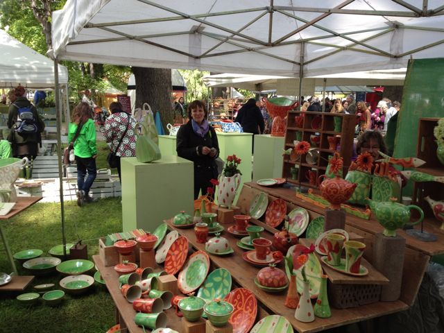 Für Christine war es das erste Mal in Diessen und schon bald stöberten wir alle vier happy und mit roten Backen in der Vielfalt der Töpferstände. Claudia flirtete überglücklich mit ihrem Lieblingstöpfer aus Frankreich bis er ihr sogar noch ein Väseli schenkte. Oh la la!